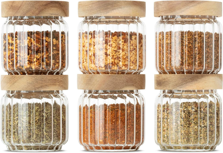 Econovo® Gewürzgläser geriffelt (150ml | 6-tlg.), stapelbar und luftdicht, Gewürzgläser Set mit Deck