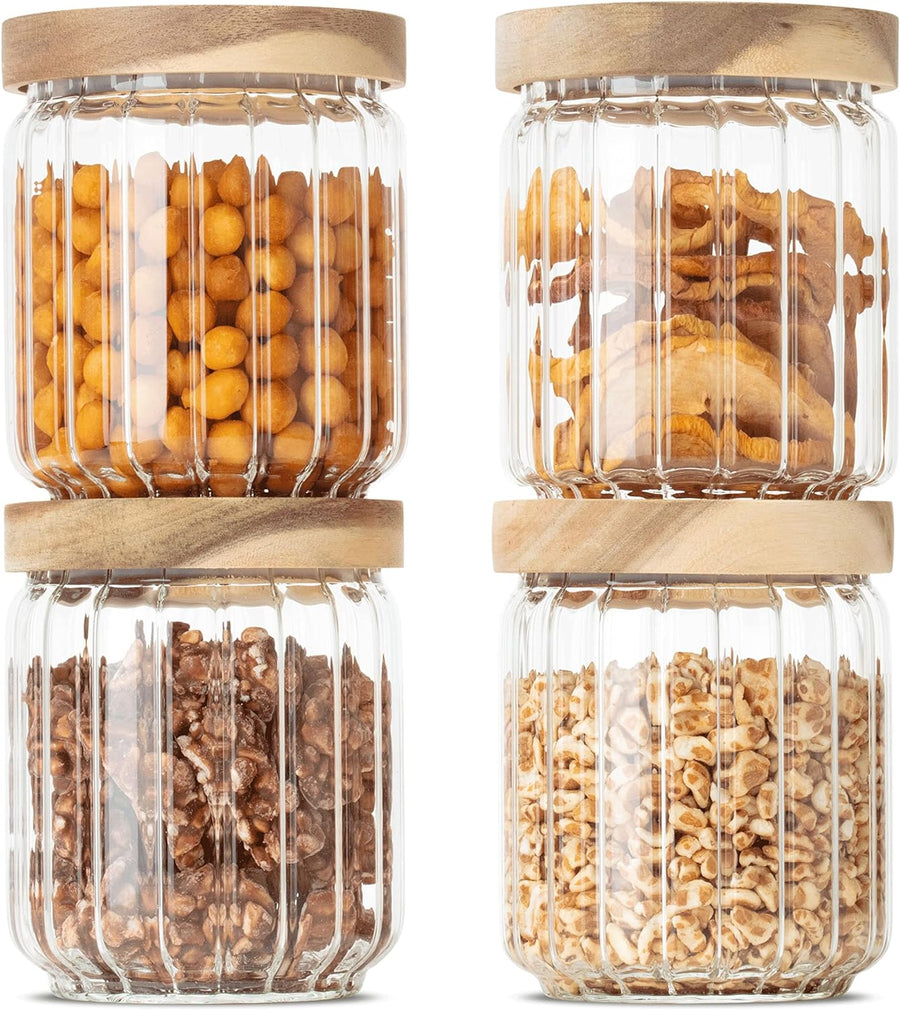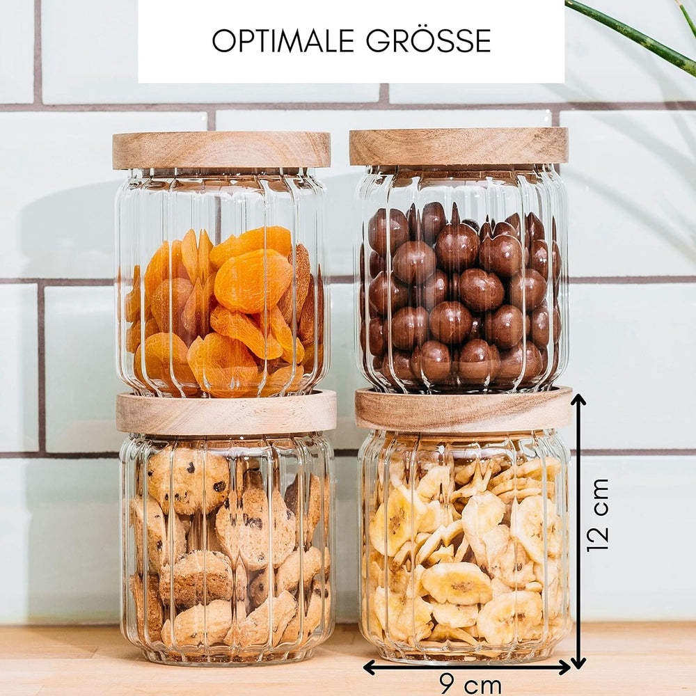 Econovo® geriffelte Vorratsgläser mit Deckel (500ml | 4-tlg.), stapelbar und luftdicht, Aufbewahrung