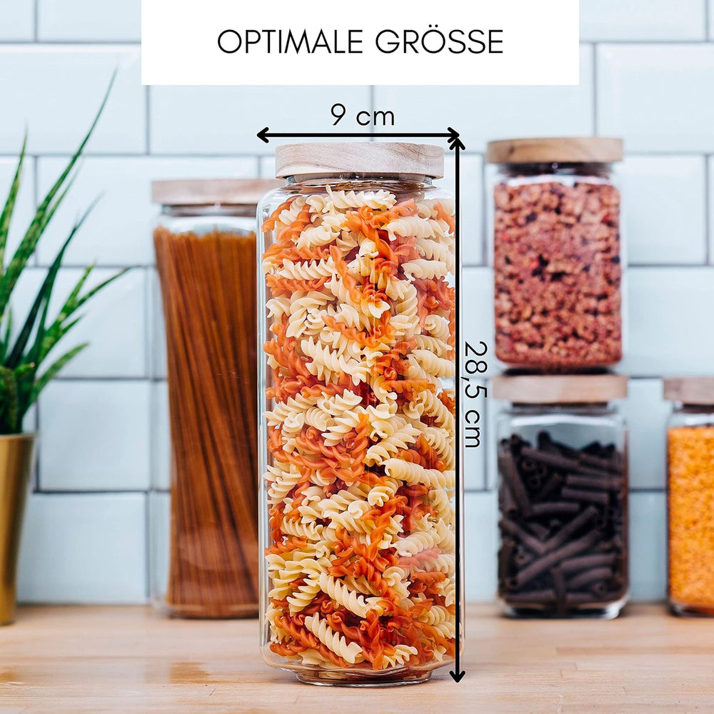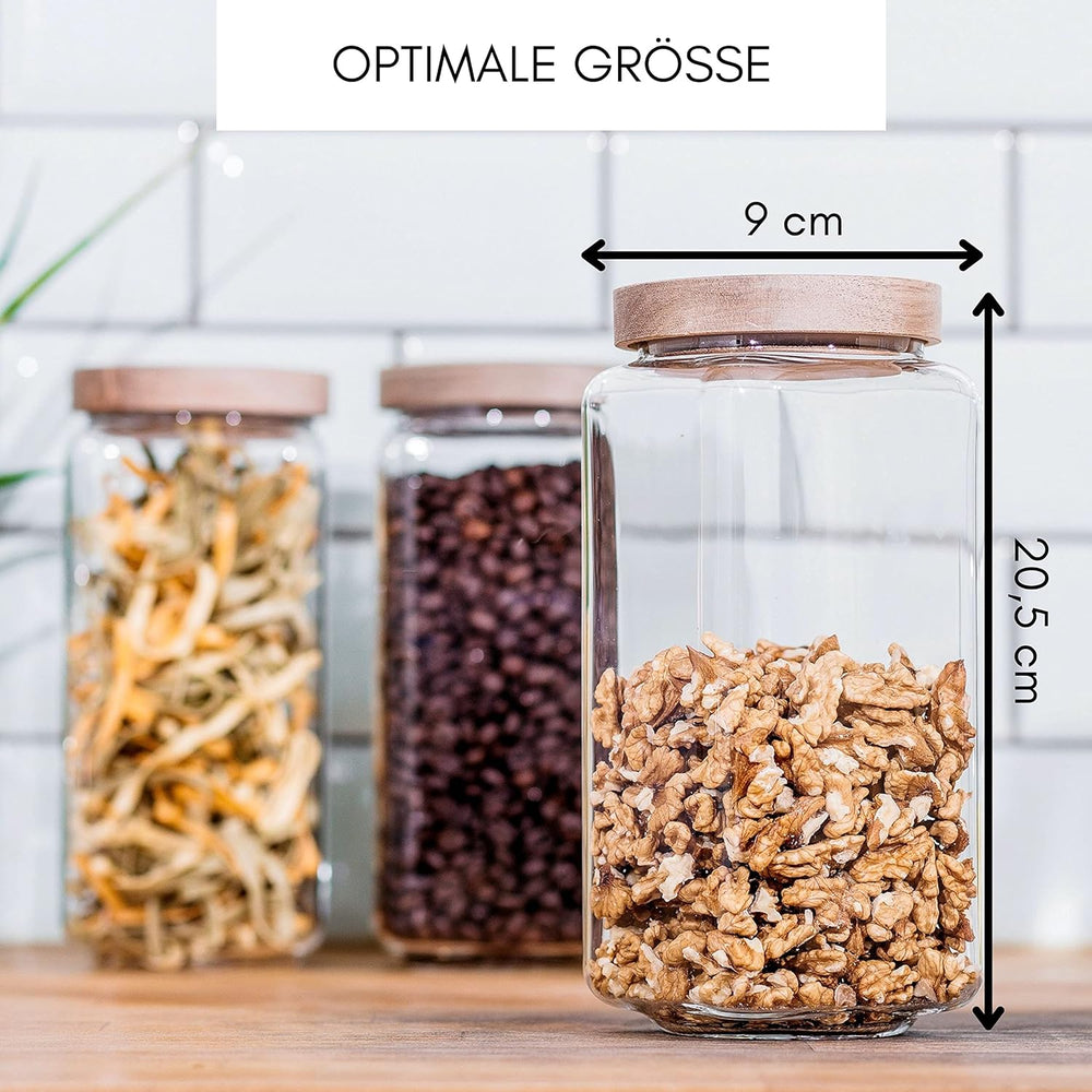 Econovo® Vorratsgläser eckig Set mit Deckel 1200ml (3-teilig) aus mundgeblasenem Borosilikatglas, st