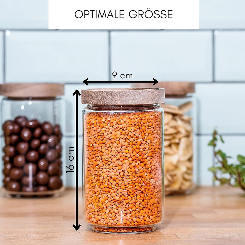 Econovo® Vorratsdosen mit Deckel aus Glas 700ml (3-teilig), stapelbar und luftdicht, Vorratsbehälter