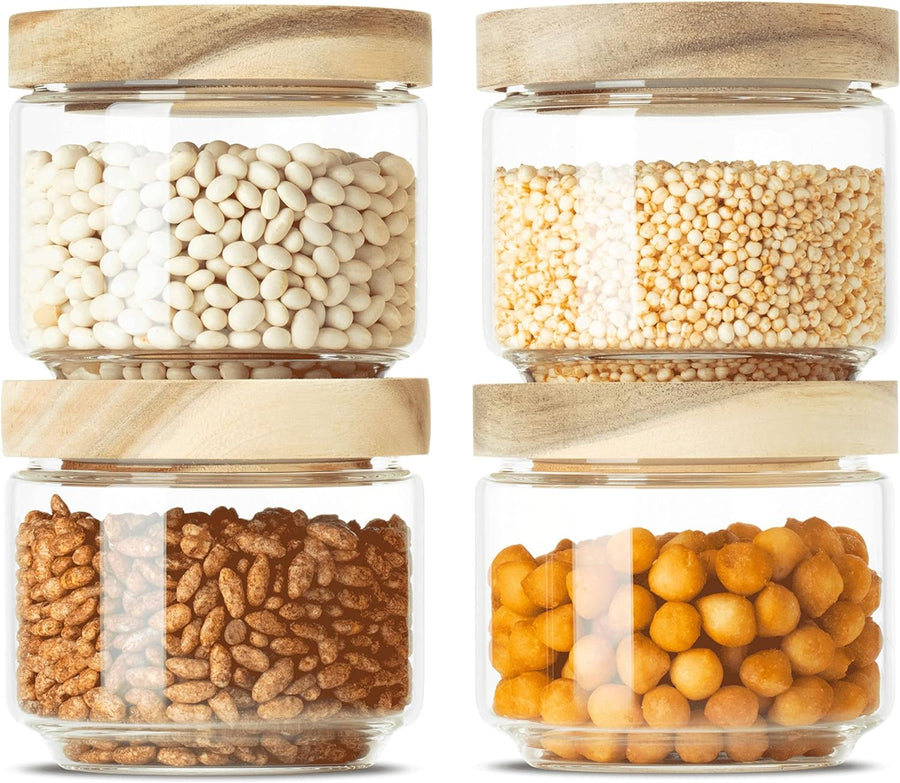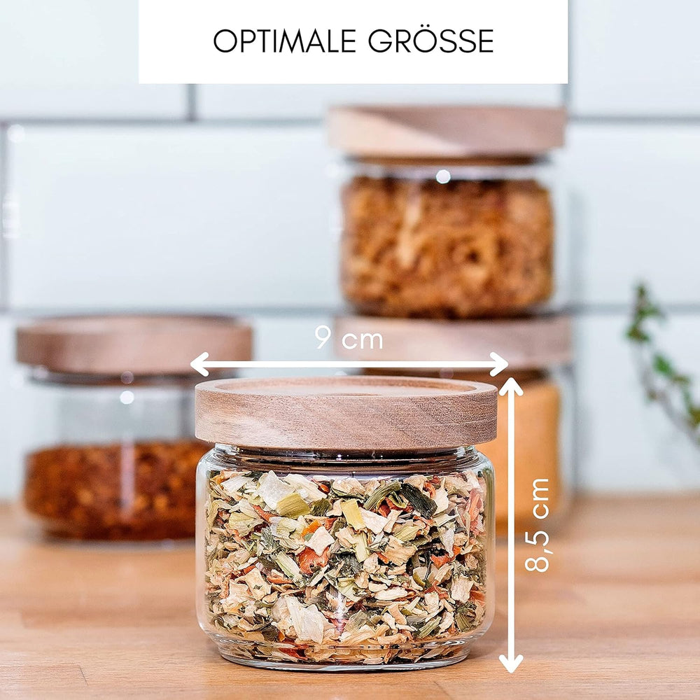Econovo® Vorratsgläser mit Holzdeckel 500ml (4-teilig) aus Borosilikatglas, stapelbar und luftdicht,