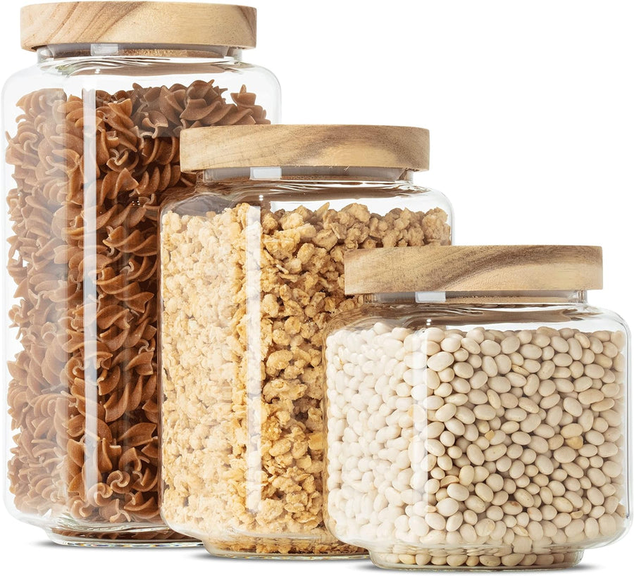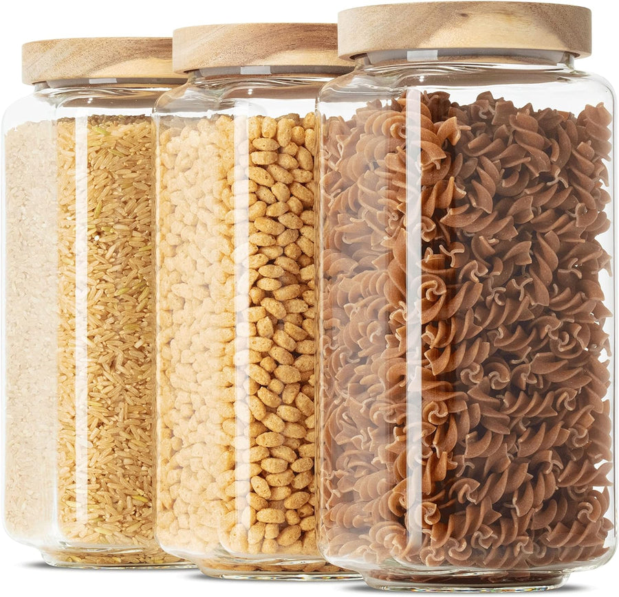 Econovo® Vorratsgläser mit Deckel eckig (3-teilig) Vorratsdosen mit Deckel Glas, stapelbar & luftdic