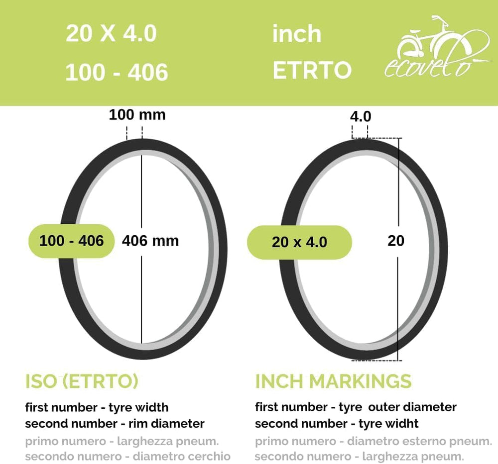 Ecovelò Unisex – Erwachsene 26x4.0 (100-559) + Kammern mit V.a. Reifen für Fat Bike Gummi MTB 2 26 x