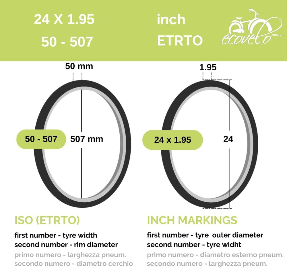 Ecovelò Kinder Kameras 2 MTB Reifen 24 x 1,95 (50-507) + Kammern, Schwarz, 24 X 1.95