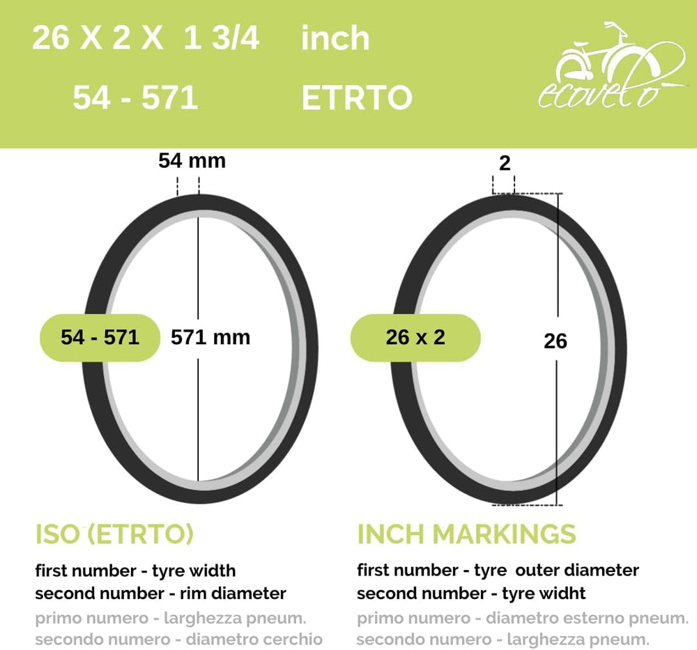 Ecovelò Unisex – Erwachsene 26 x 2,10 2 Reifen MTB 26 x 2.10 (54-559), Schwarz, Einheitsgrösse