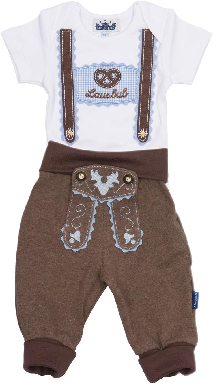 P.Eisenherz Trachten SET für Lausbuben bestehend aus Baby Body mit kurzem Arm und Applikation Hosent
