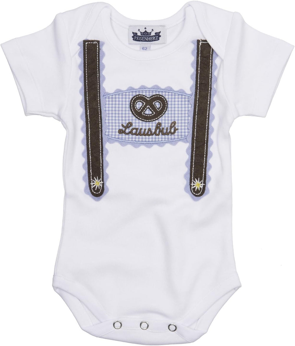 P.Eisenherz Trachten Set für Lausbuben bestehend aus Baby Body mit kurzem Arm und Applikation Hosent
