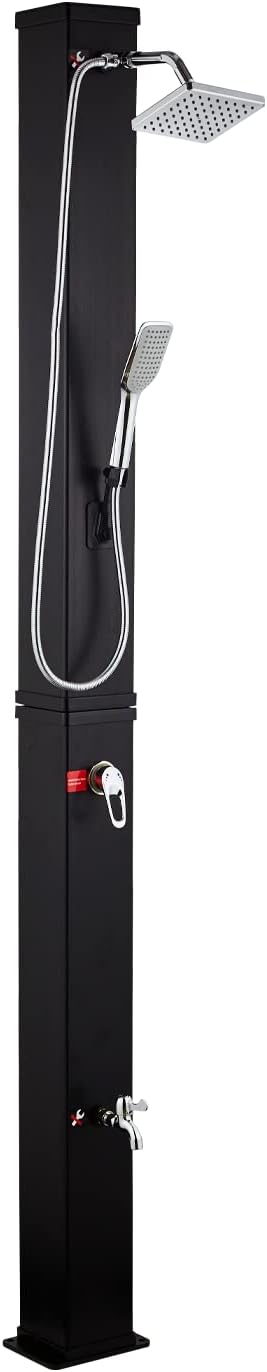 Elbe Solardusche 40L Solar Gartendusche mit Handbrause Wanneneinlauf und Regenduschkopf, Wassertempe