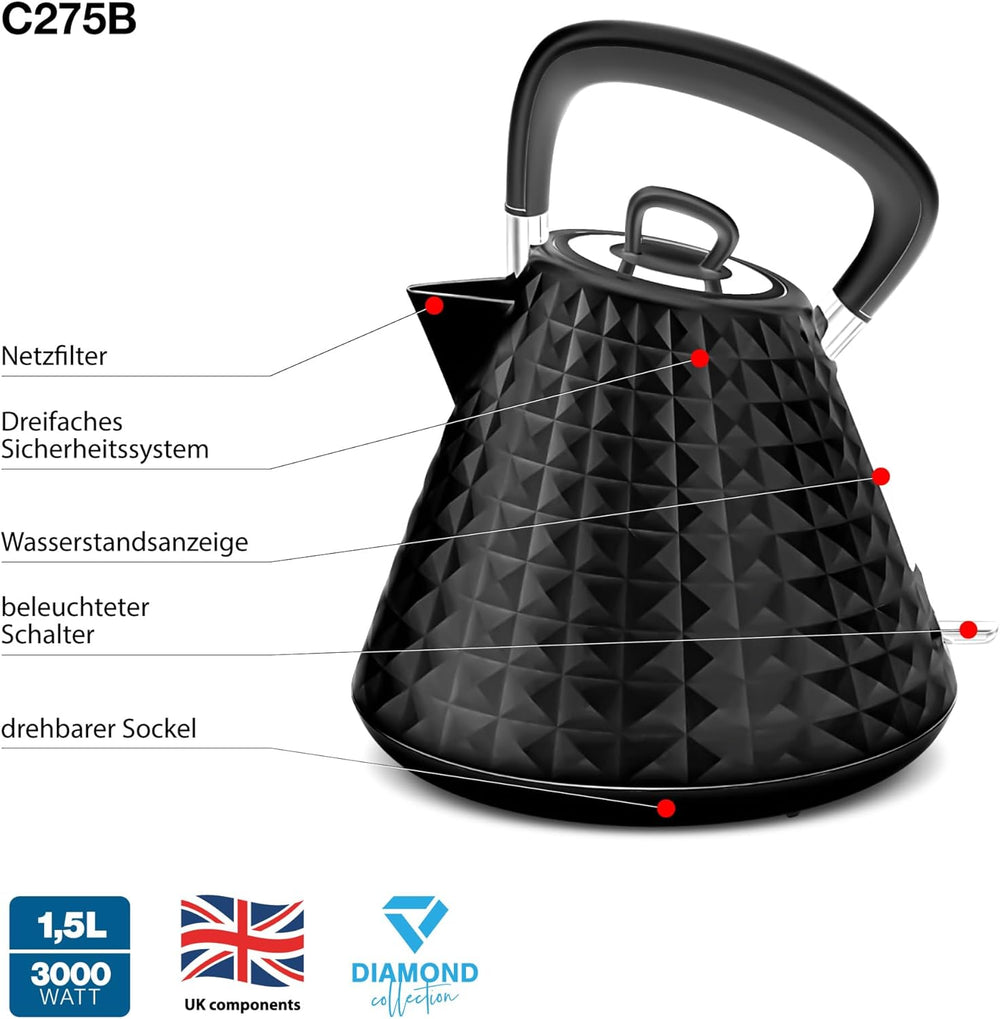 eldom C265B Wasserkocher | 1,7 Liter | Teekocher 2000W Leistung | Klassisches Retro Design Teekessel