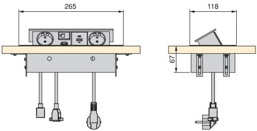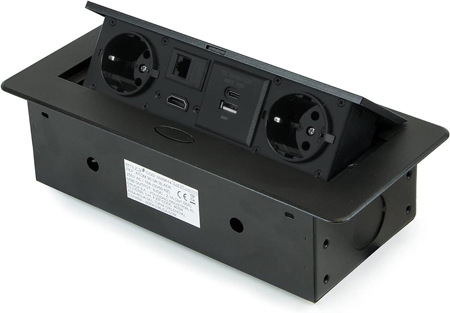 Emuca - ausziehbare und in den Tisch einlassbare Vielfachsteckerleiste, Mehrfachstecker (EU-Stecker