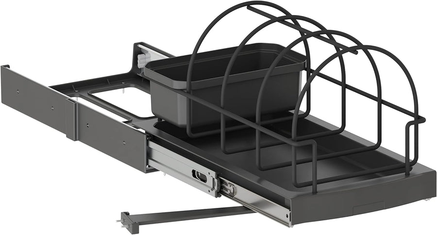 Emuca - Ablage für Küchenzubehör, Bodenbefestigung und manueller Auszug, Anthrazitgrauer Kunststoff,