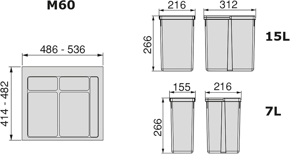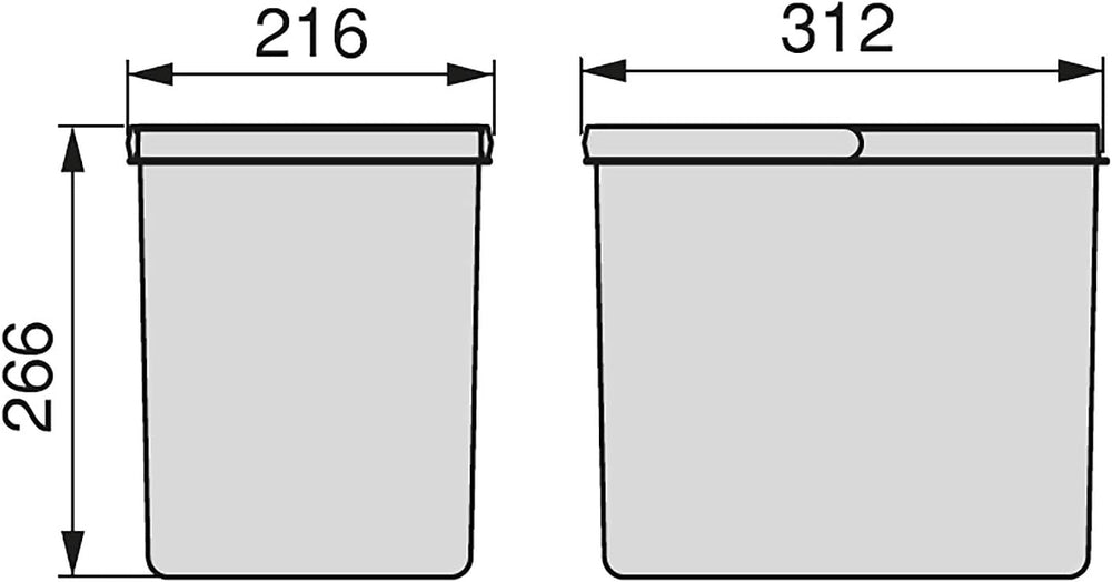 Emuca - Abfallsammler, Müllbehälter für zuschneidbaren Basis, Kit aus 2 Eimern mit höhe 216mm und Fa