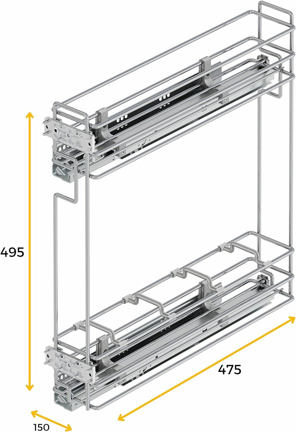 Emuca - Ausziehbarer Flaschenhalter mit Dämpfungssystem, Ausziehbarer Flaschenwagen für Küchenschrän