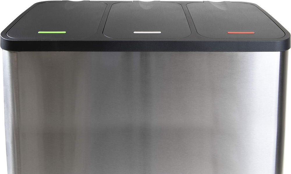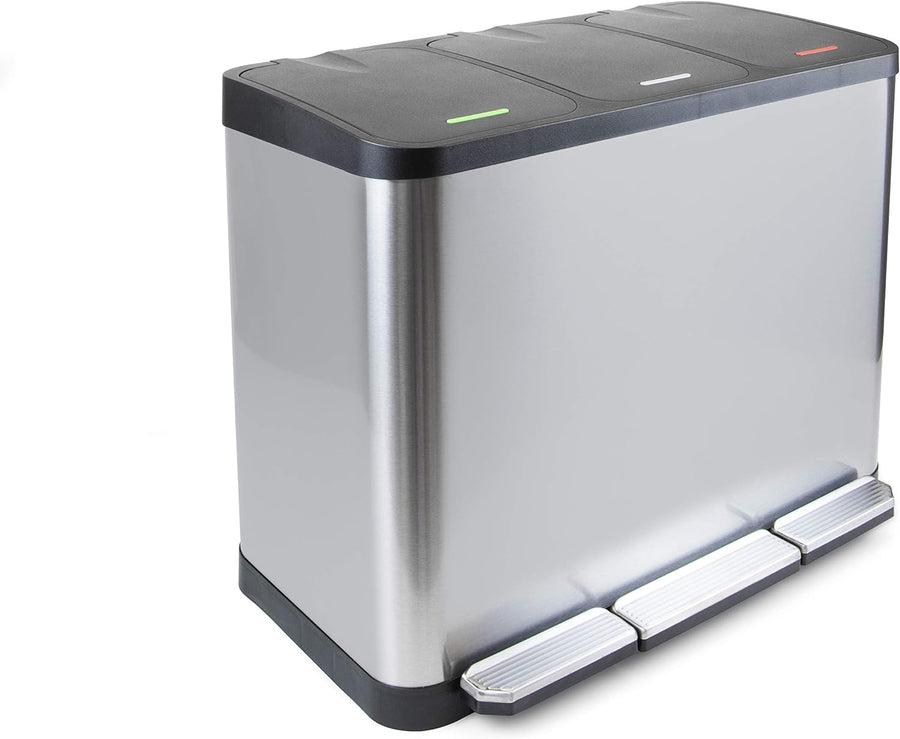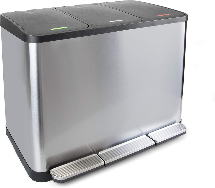 Emuca - Aussenbehälter mit 3 Fächern à 15 Liter, Treteimer, Abfallsammler, Edelstahl 15L 3 Fächern,
