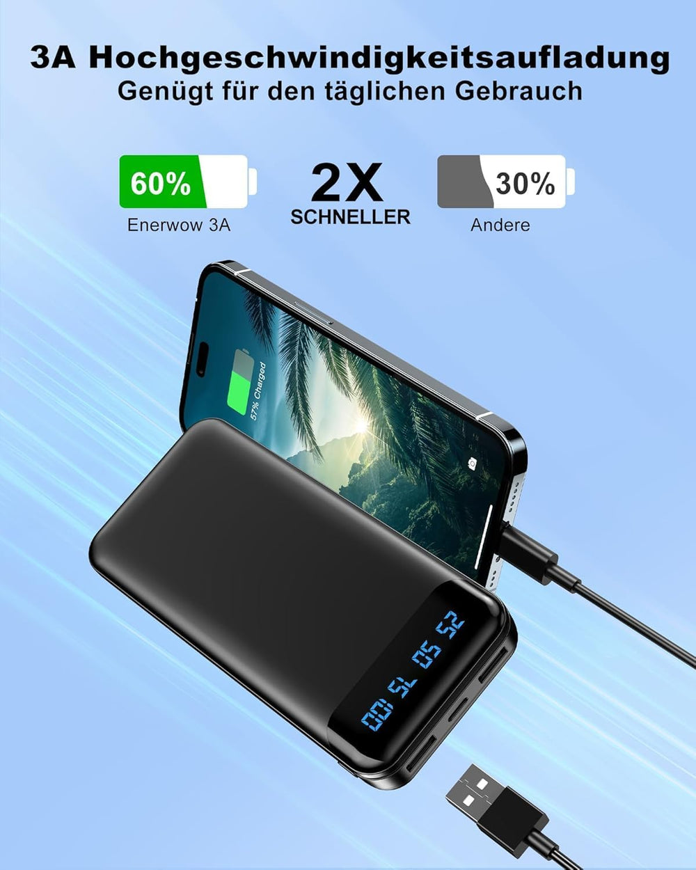 Enerwow Power Bank, 27000mAh Powerbank PD 30W Schnellaufladung USB C Tragbares Ladegerät mit Digital
