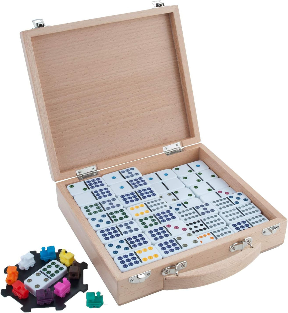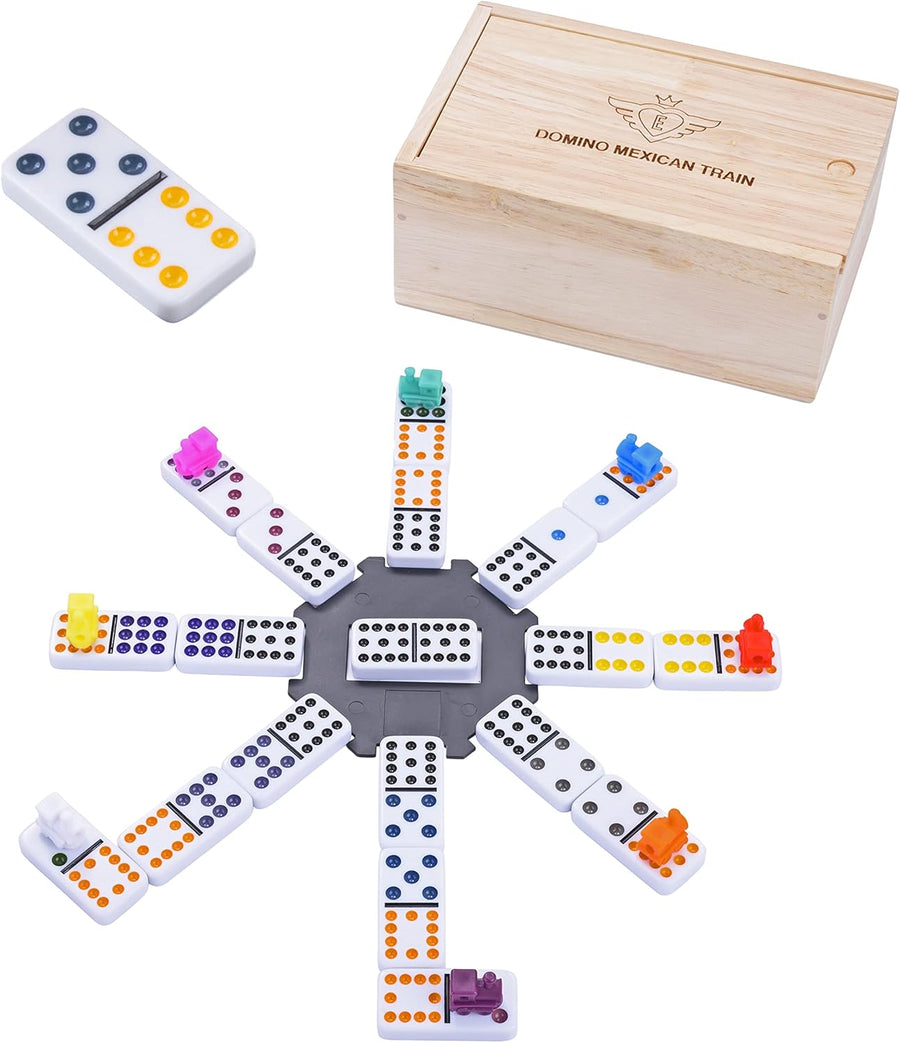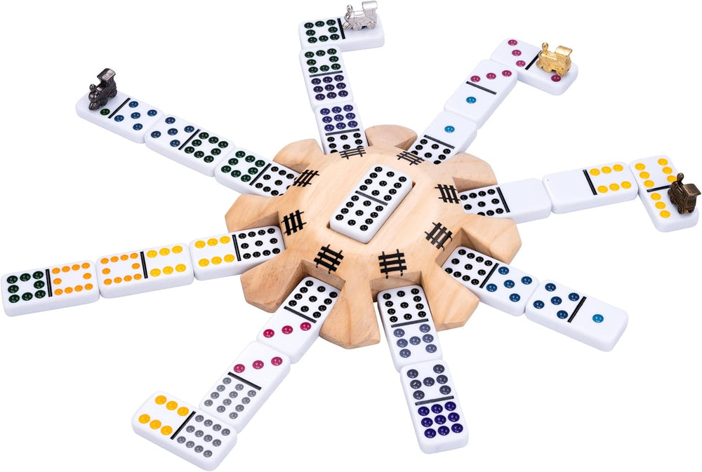 Engelhart - Domino Mexican Train/Zug -Premium- Qualität - Dobbel 12-2-8 Spieler - 91 farbige Dominos