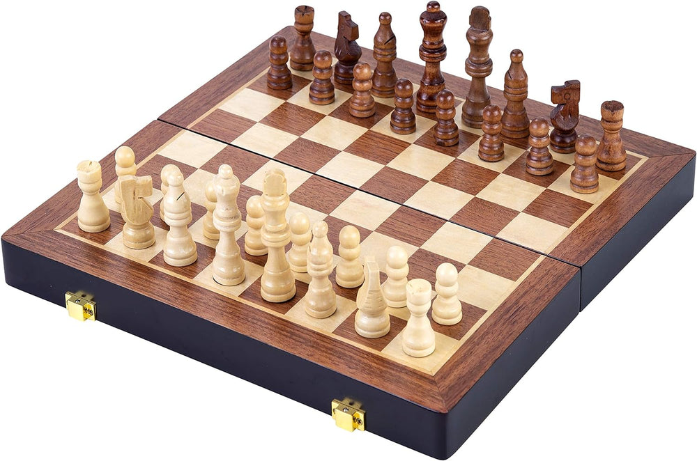 Engelhart - Schach/Backgammon Holzkiste - Wende- und Klappbrett - Inklusive Teile (30 cm) 30 x 30 cm