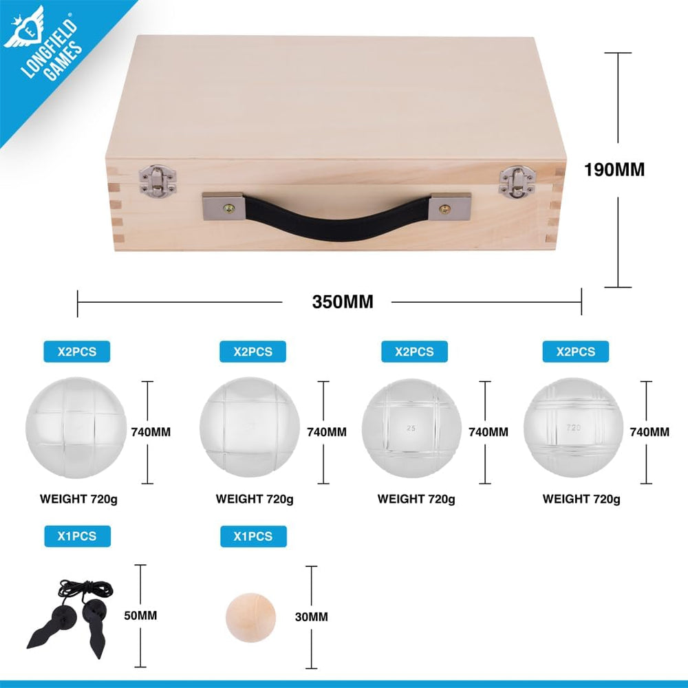 Engelhart - 010206 - Petanque Kugeln Set (8 boulekugel ) Luxus Petanque Spiele - Boules-Set In Holzk