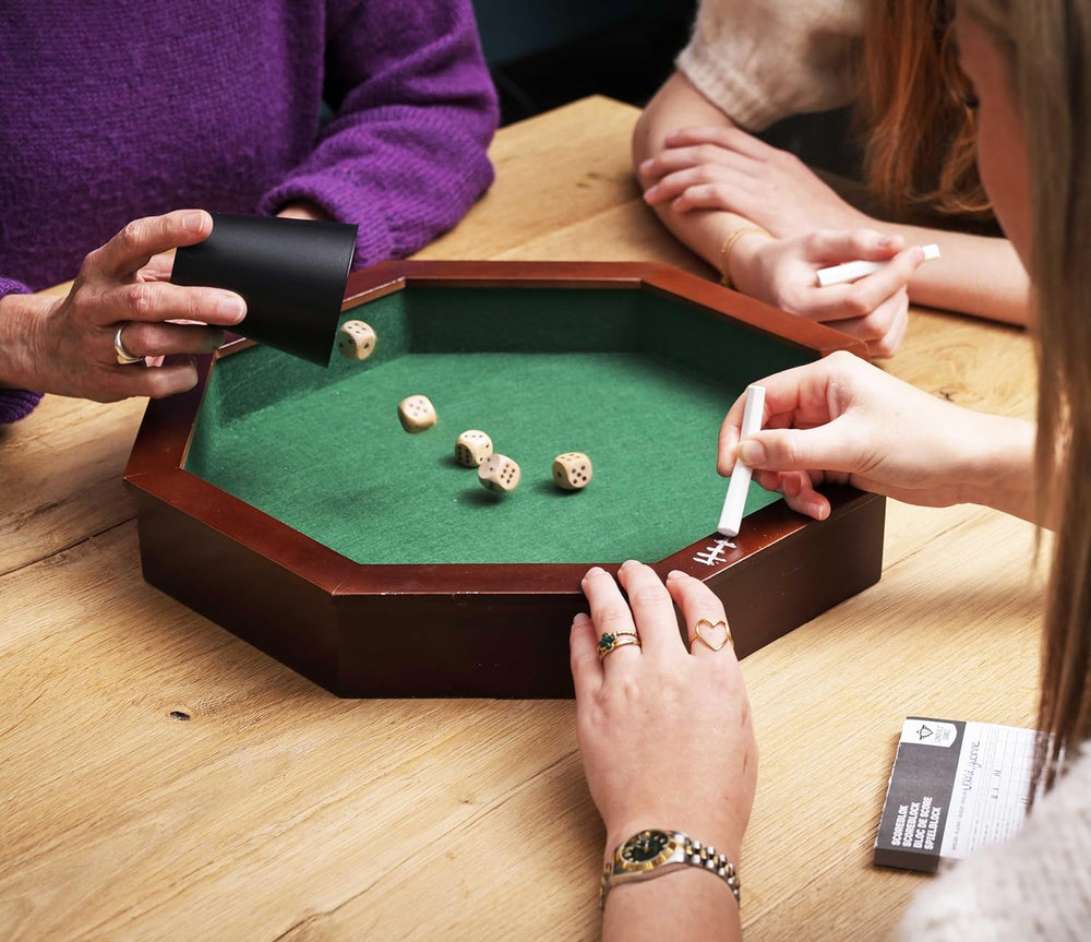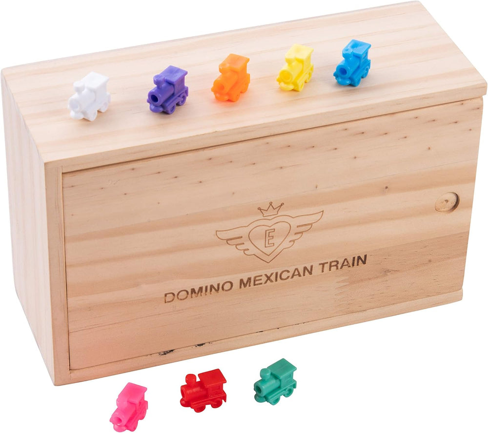 Engelhart - Domino Mexikanischer Zug D12 Deluxe in Einer Box aus Buchenholz + Punkteblock + Bahnhof
