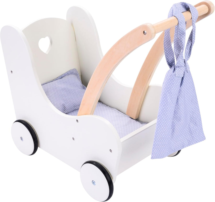 Engelhart – 606014 – Eleganter Puppenwagen aus Holz – Grau und Weiss – Masse: 50 x 28 x 46 cm – Ab 3