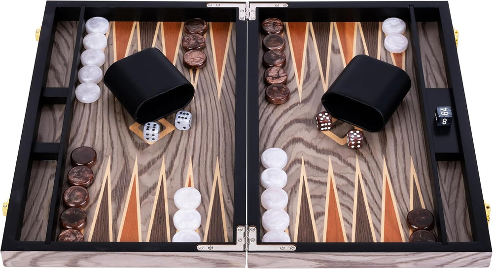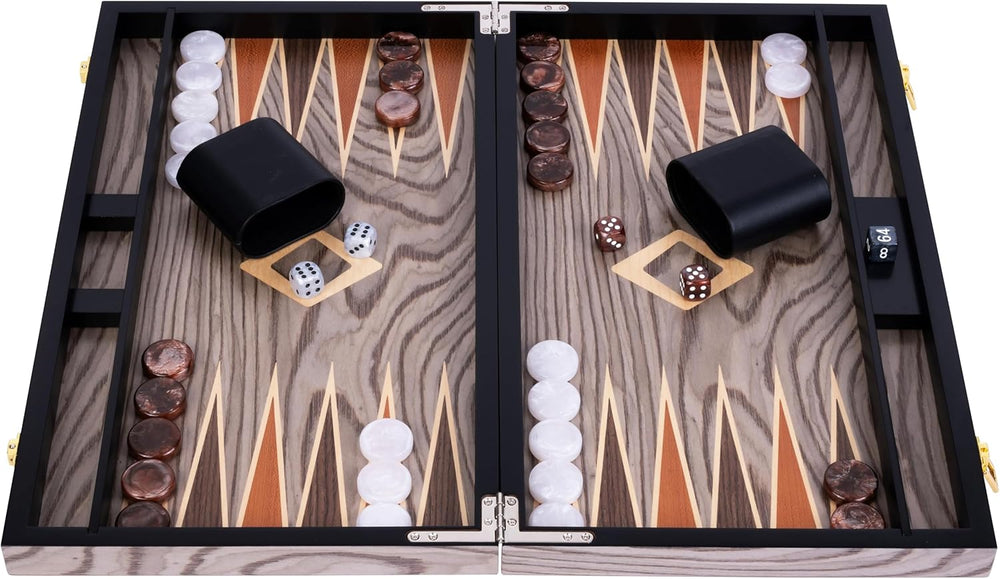 Engelhart- 250542 - Luxus-Backgammon 15 Zoll – Ebenholzfurnier lackiert – grau 15 Zoll Ebenholzgrau,