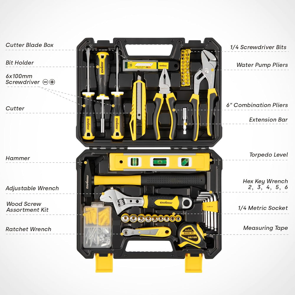ENVENTOR Werkzeugkoffer Gefüllt 222 tlg - Haushalts Werkzeug-Set, Werkzeugkasten mit Schraubendreher