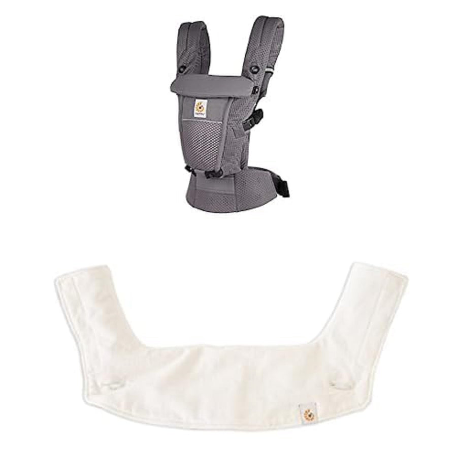 Ergobaby Bundle aus Adapt SoftFlex Mesh 3-Positionen Babytrage, Graphite Grey + Schultergurtschoner