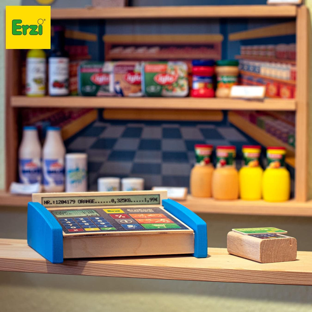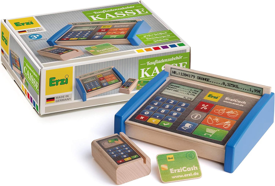 Erzi 10543 Kasse aus Holz, Kaufladenartikel für Kinder, Rollenspiele