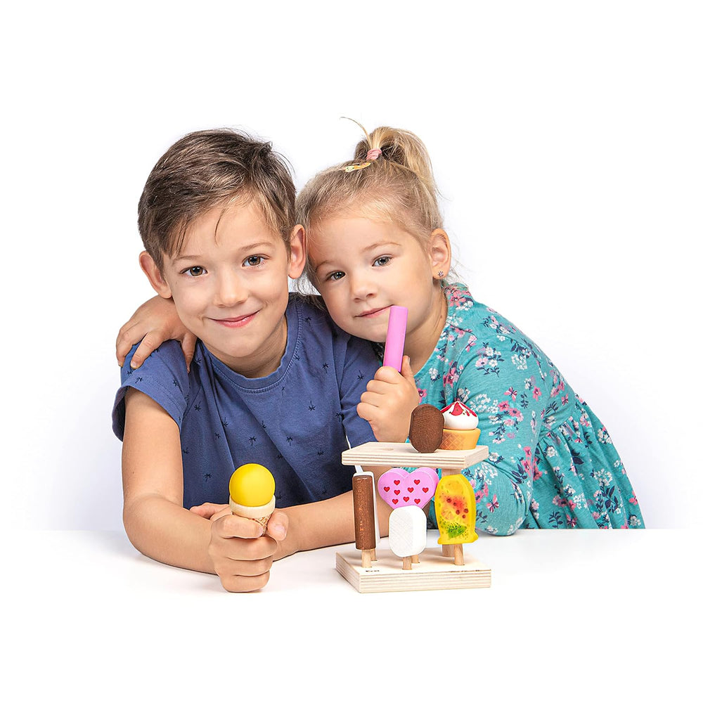 Erzi 10101 Eisständer summerfresh aus Holz, Kaufladenartikel für Kinder, Rollenspiele