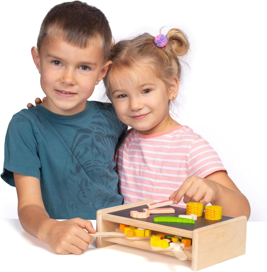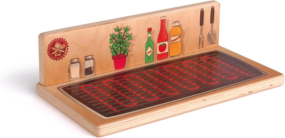 Erzi 10691 Tischgrill & Kochplatte aus Holz, Kinderküche, Kaufladenartikel für Kinder, Rollenspiele