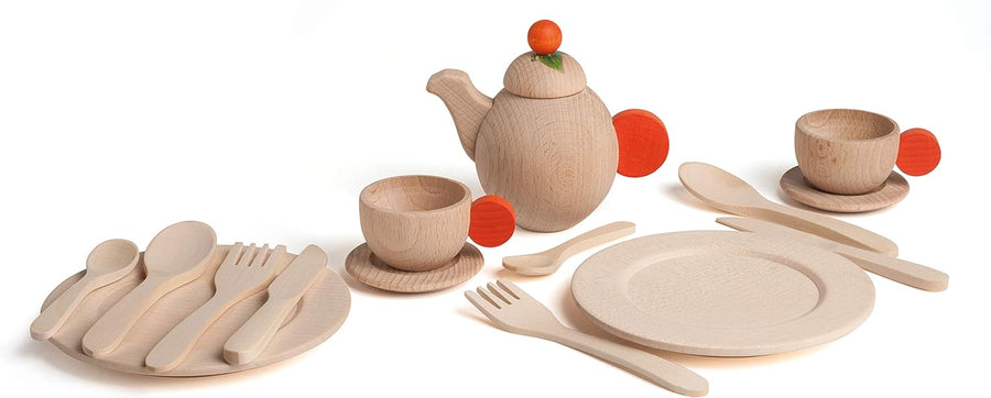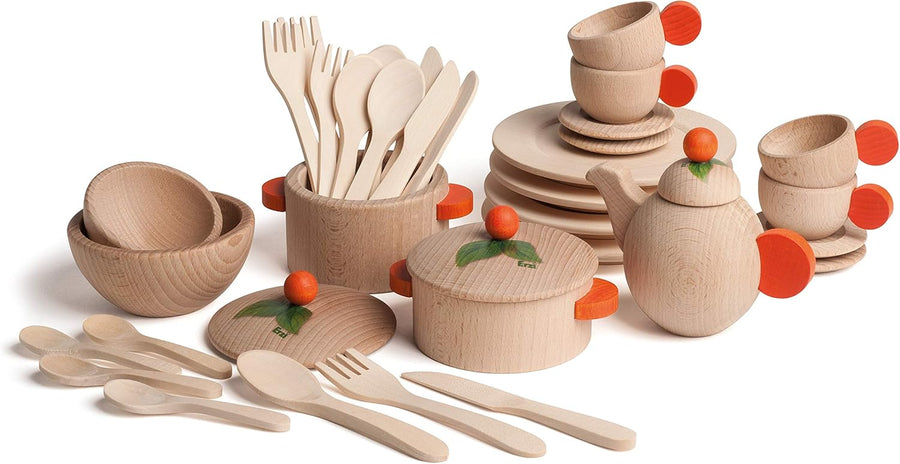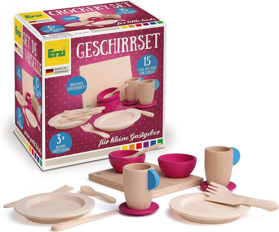 Erzi 10679 Geschirrset aus Holz, Kinderküche, Kaufladenartikel für Kinder, Rollenspiele