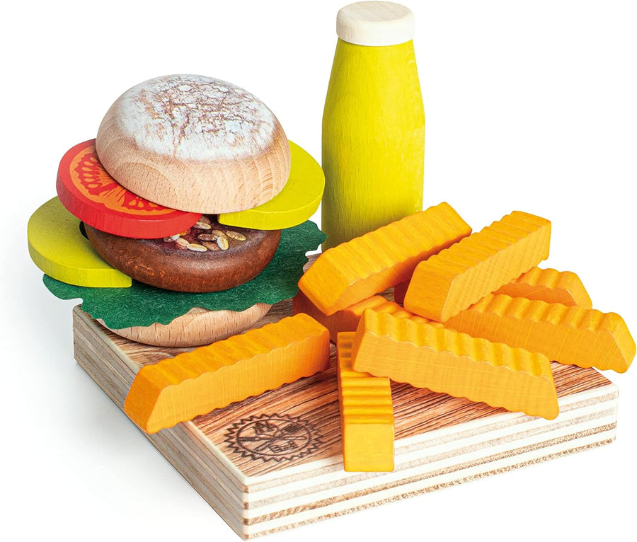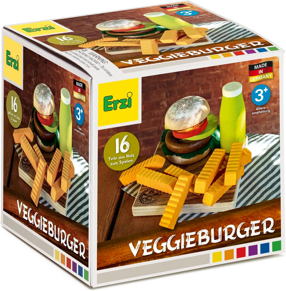 Erzi 28139 Spiel Hamburger Set Vegan Sortiment (16 Stück FSC Holz)