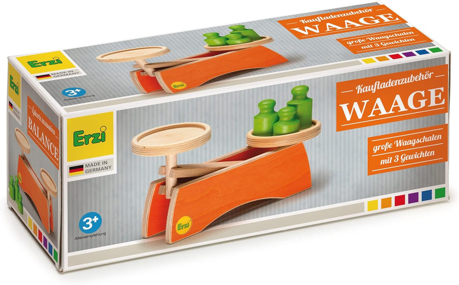 Erzi 10531 Waage aus Holz, Kaufladenartikel für Kinder, Kinderküche, Rollenspiele