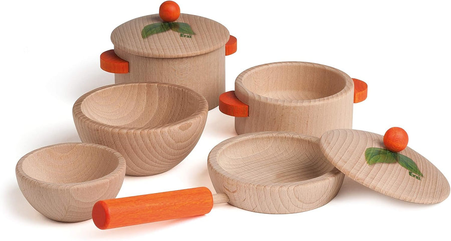 Erzi 10669 Kochset aus Holz, Kinderküche, Kaufladenartikel für Kinder, Rollenspiele