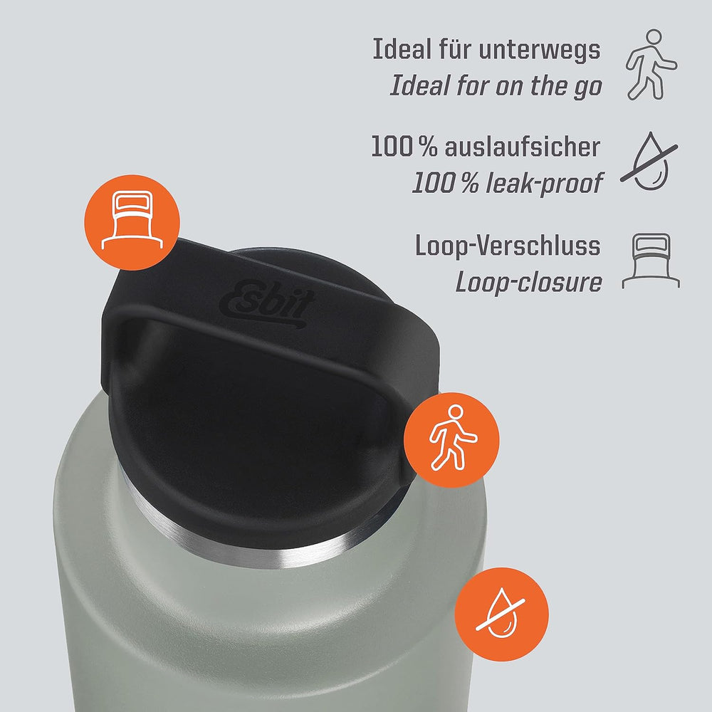 Esbit Edelstahl Isolierflasche Classic 750 ml in Olivgrün - für warme und kalte Getränke - Edelstahl
