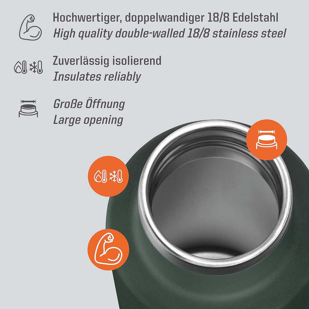 Esbit Edelstahl Isolierflasche Classic 500 ml in Olivgrün - für warme und kalte Getränke - Edelstahl