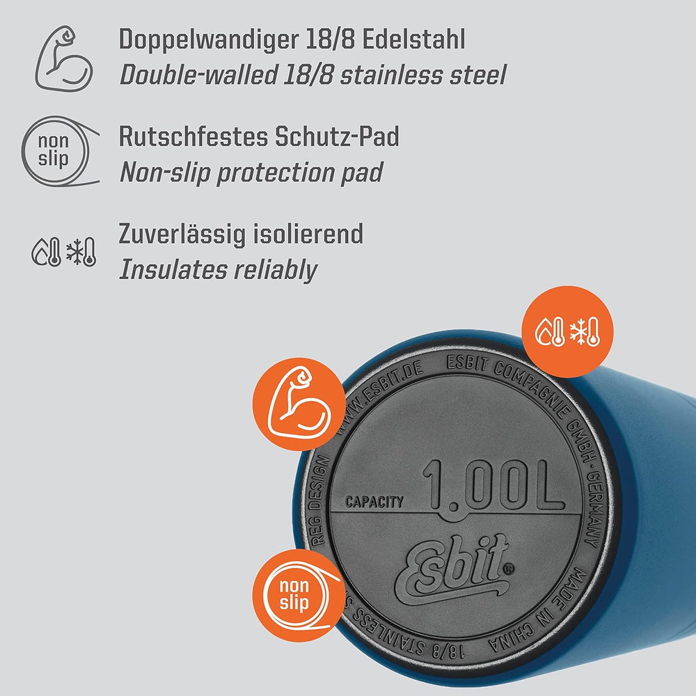 Esbit Edelstahl Isolierflasche Classic 1000 ml in Blau - für warme und kalte Getränke - Edelstahl Th