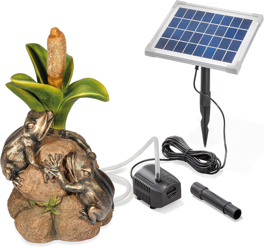 Esotec Solar Wasserspeier Set Frösche Rohrkolben, Solarpumpe, Teichfigur Gartenfigur Gartenstatue, T