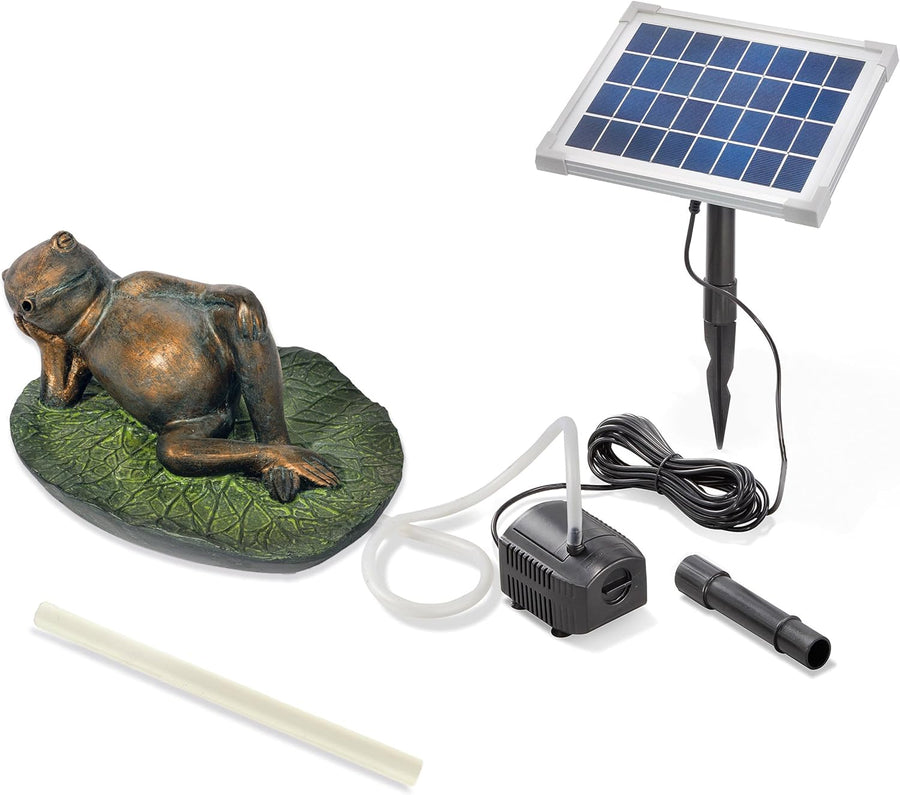 esotec Solar Set Wasserspeier Frosch sitzend, Solarpumpe, Teichfigur Gartenfigur Gartenstatue, Tauch