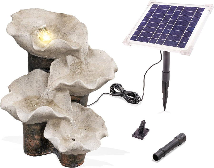 esotec Lotusblätter Solarbrunnen, Akku, LED, Kaskadenbrunnen, freistehender Springbrunnen, Lotus Gar