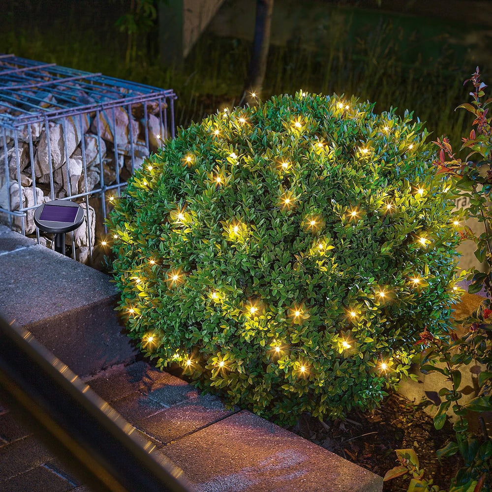 Esotec Solar Lichterkette, 6m, 60 LEDs, warmweiss, Zuleitung 2m, Akku, Solarmodul, Erdspiess, Aussen