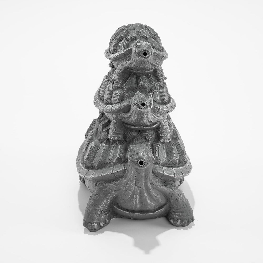 Esotec Solar Wasserspeierset Schildkröten Trio, Stein-grau, inklusive Solar-Pumpensystem, Solarmodul