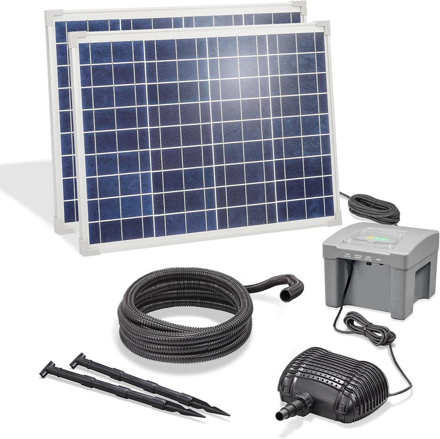 Esotec Solar Bachlaufpumpenset 100/1900 mit Filterpumpe, Komplettset, Akkubox 24Ah LiFePo4 Akku, 2X