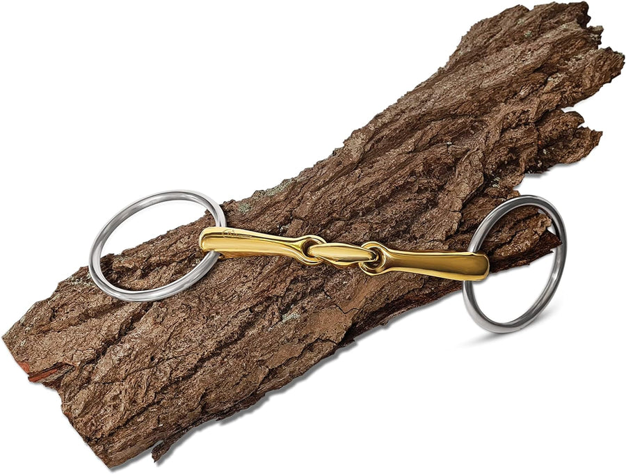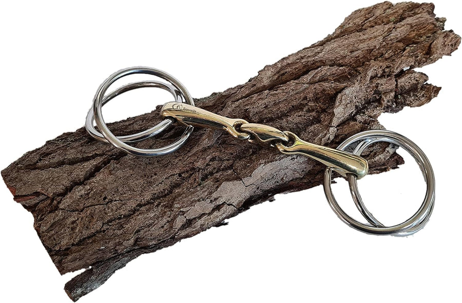 Esposita Doppelringtrense Fahrgebiss - doppelt gebrochen - Messing Mundstück - Ringe aus Edelstahl (