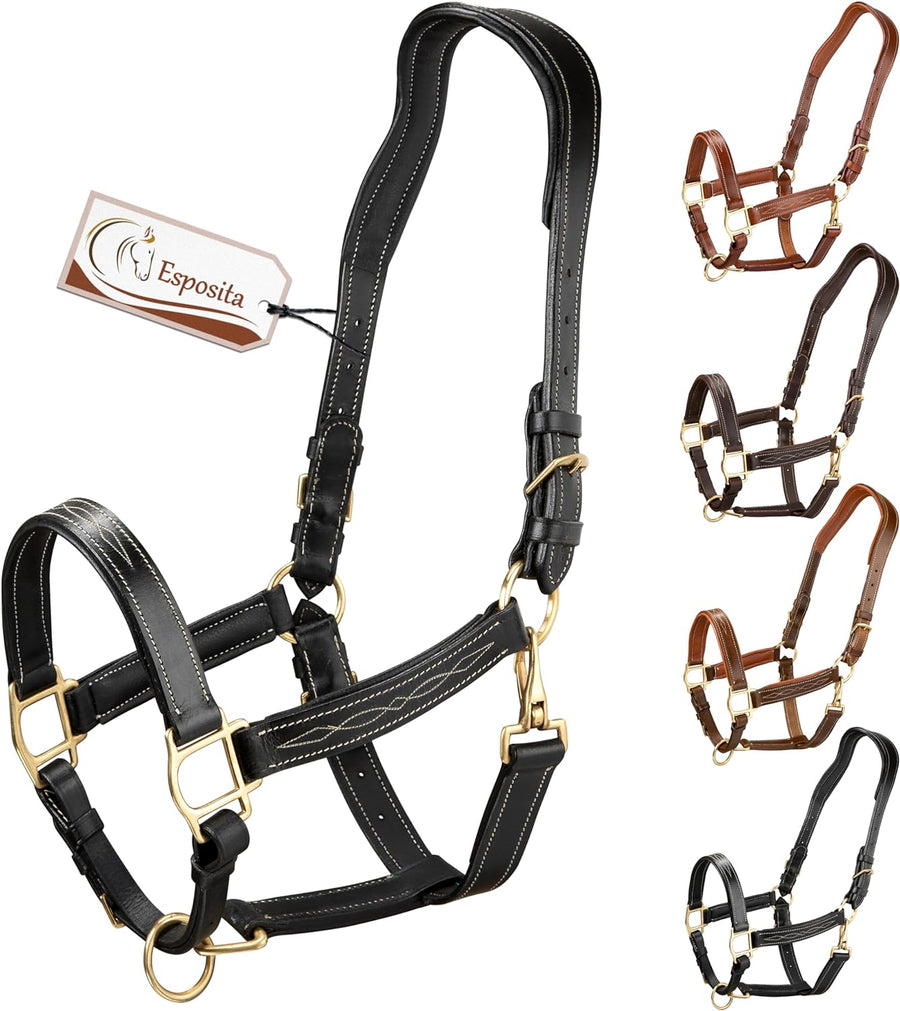 Esposita anatomisches Lederhalfter Deluxe Halfter aus Leder für Pferde Stallhalfter Pferdehalfter -