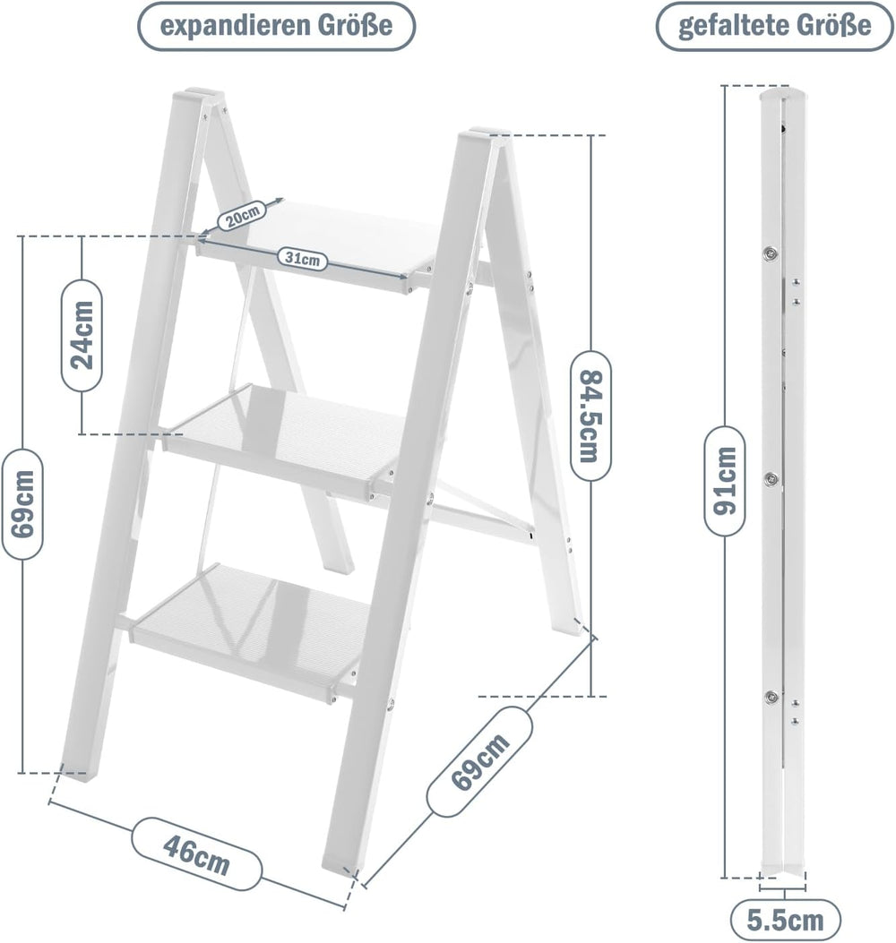 Eulenke 3 Stufen Leiter, Trittleiter Stufen, Klappleiter, Aluminium Leicht Stehleitern, Tragbare Kla