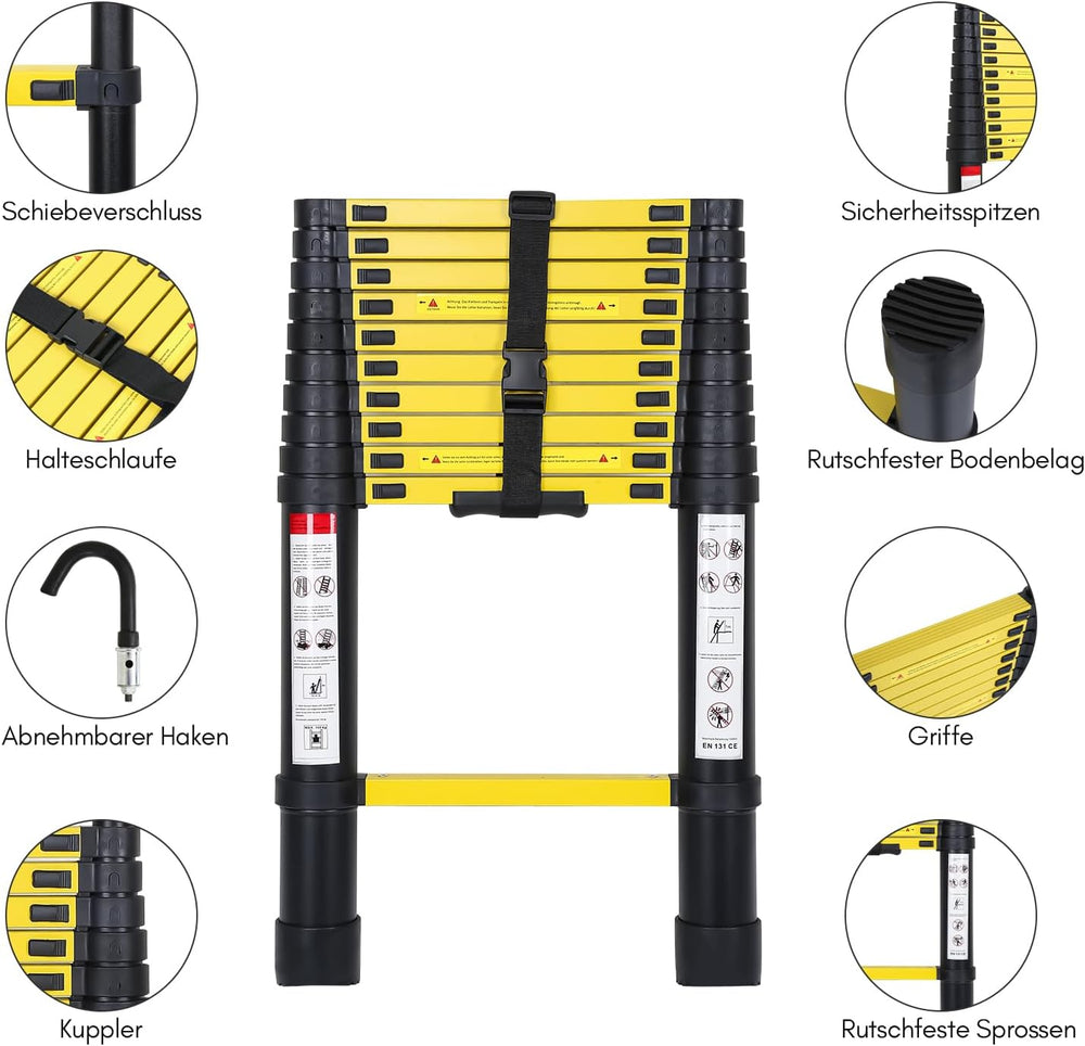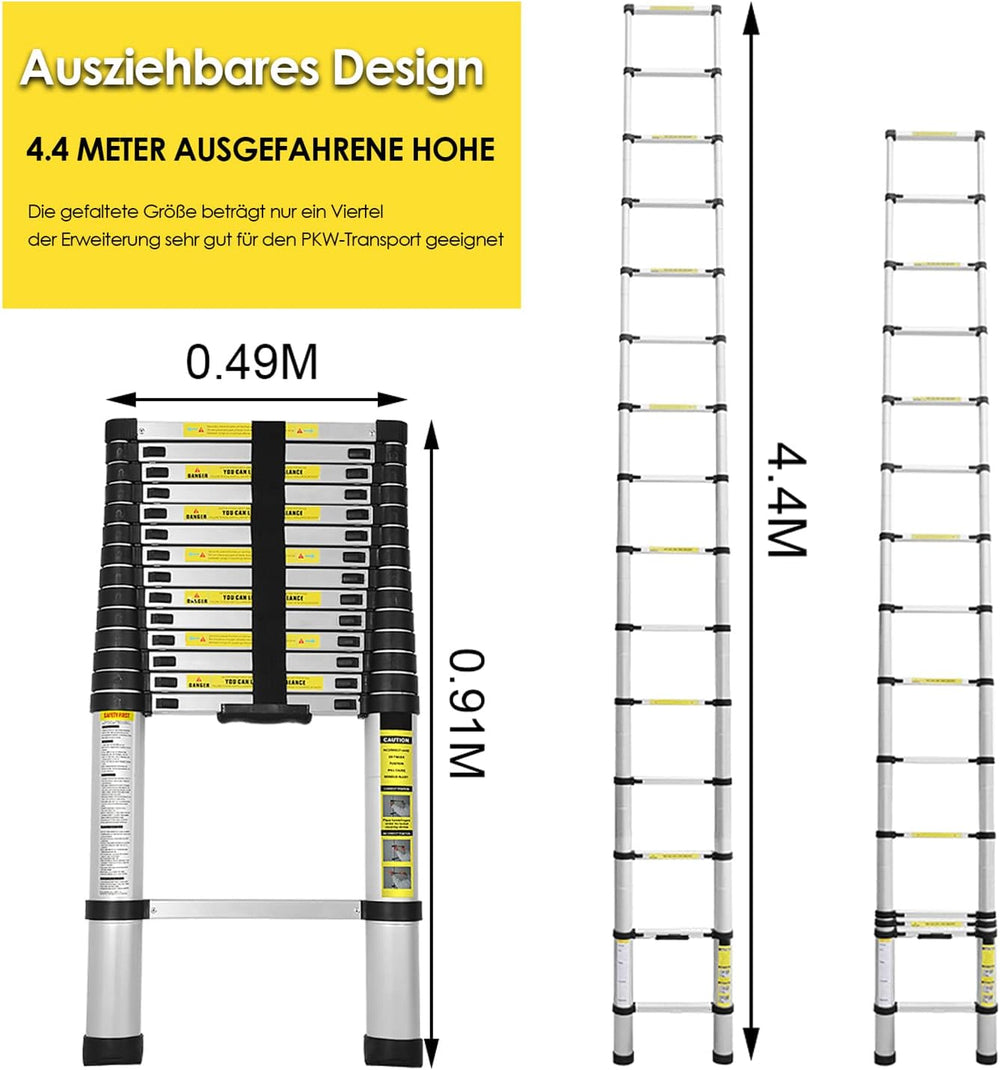 Eulenke 4,4M Teleskopleiter - Rutschfester Multifunktionsleiter 150 kg Belastbarkeit - Aluleiter Hau