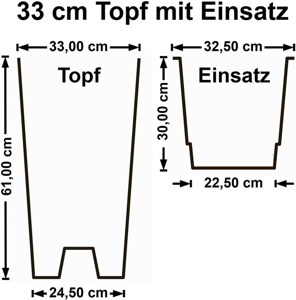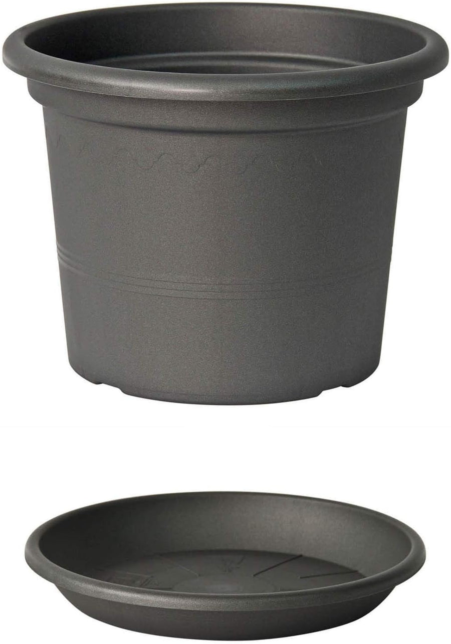 Euro3Plast Geo Blumentopf mit Untersetzer 12 Grössen und 9 Farben zur Wahl (60 cm, Anthrazit) 60 cm
