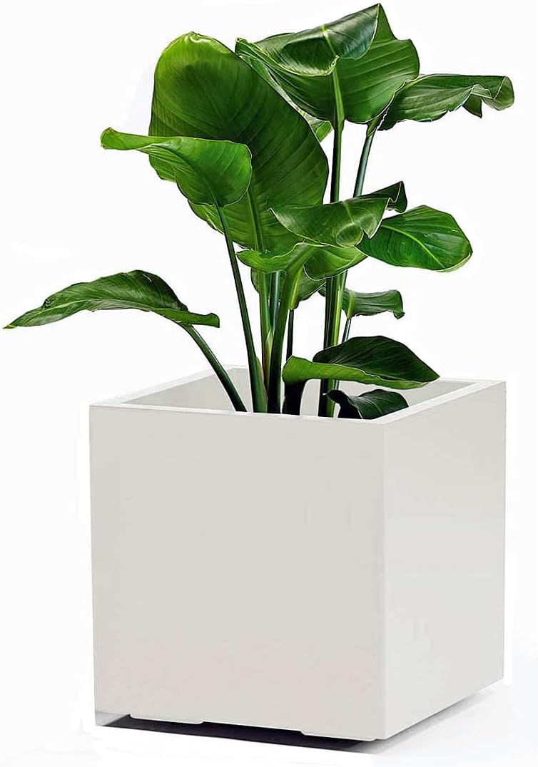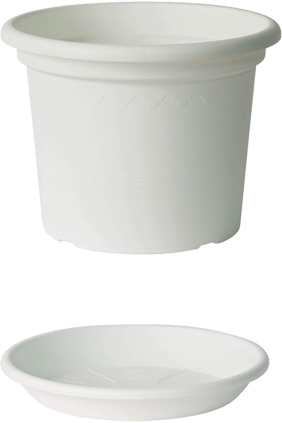 Euro3Plast Geo Blumentopf mit Untersetzer 12 Grössen und 9 Farben zur Wahl (60 cm, Weiss)