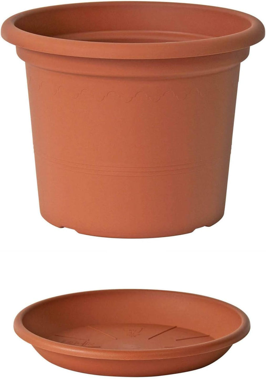 Euro3plast Geo Blumentopf mit Untersetzer 12 Grössen und 9 Farben zur Wahl (60 cm, Terrakotta) 60 cm
